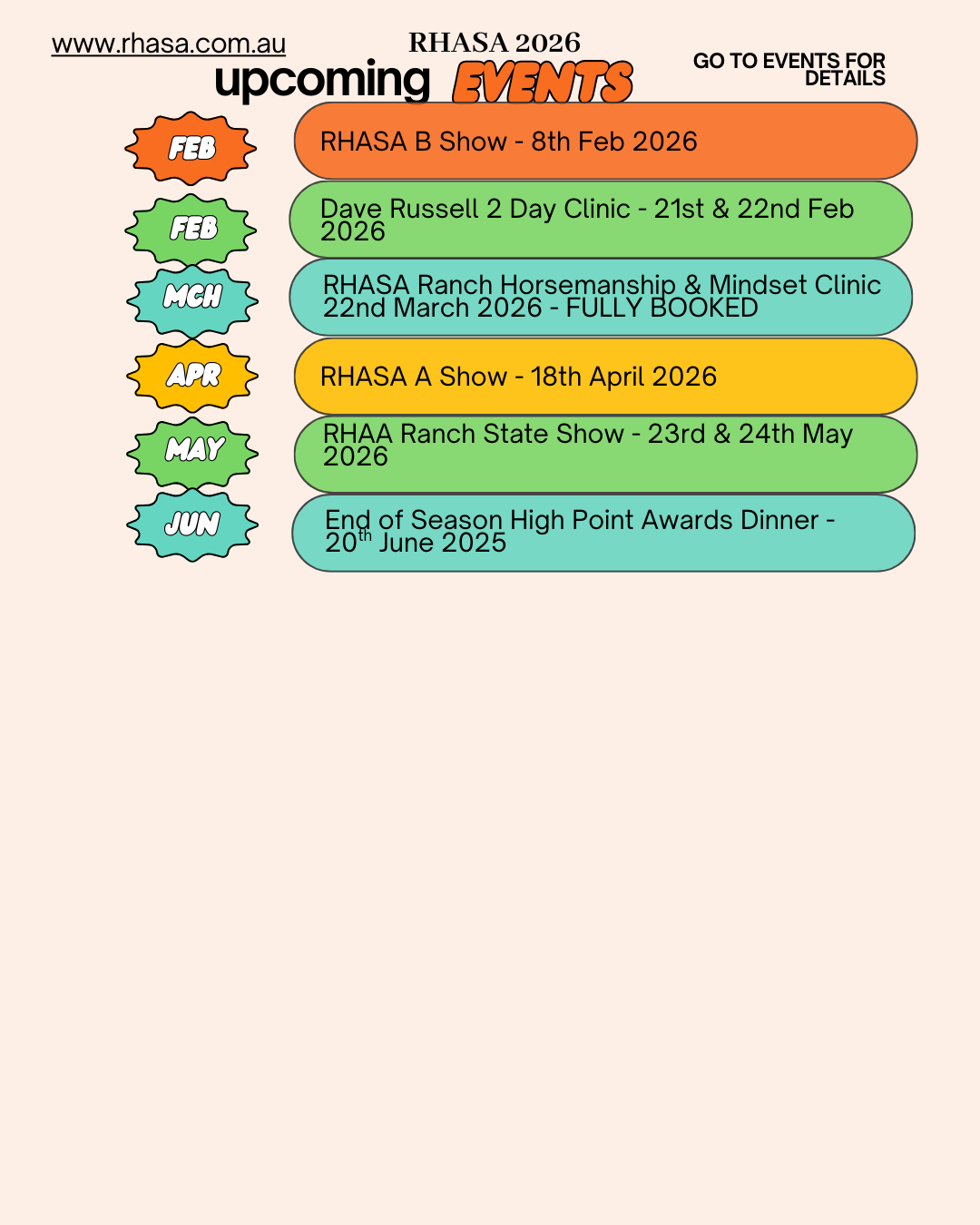 The RHASA Club is excited to be offering an expanded show and clinic options in 2025/26.